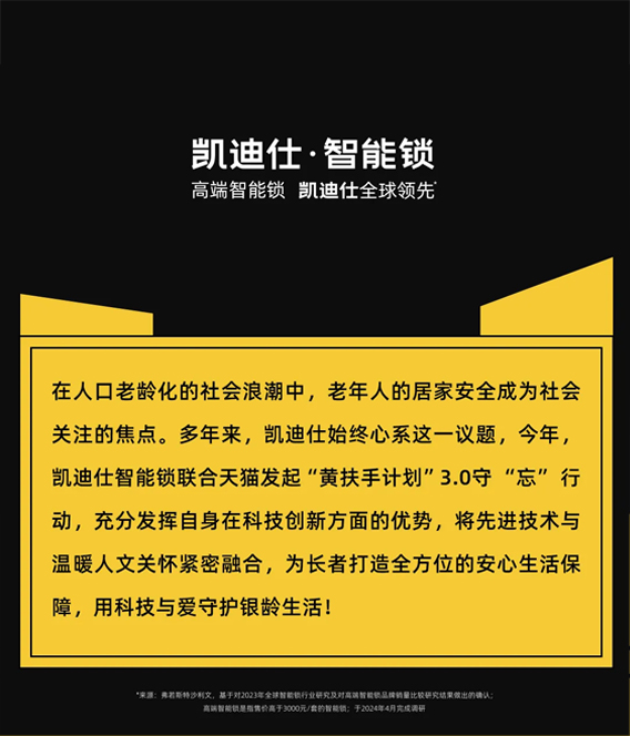 凱迪仕聯(lián)合天貓發(fā)起“黃扶手計(jì)劃”守“忘”行動(dòng),獲“愛心品牌”榮譽(yù),用科技與愛守護(hù)銀齡生活!